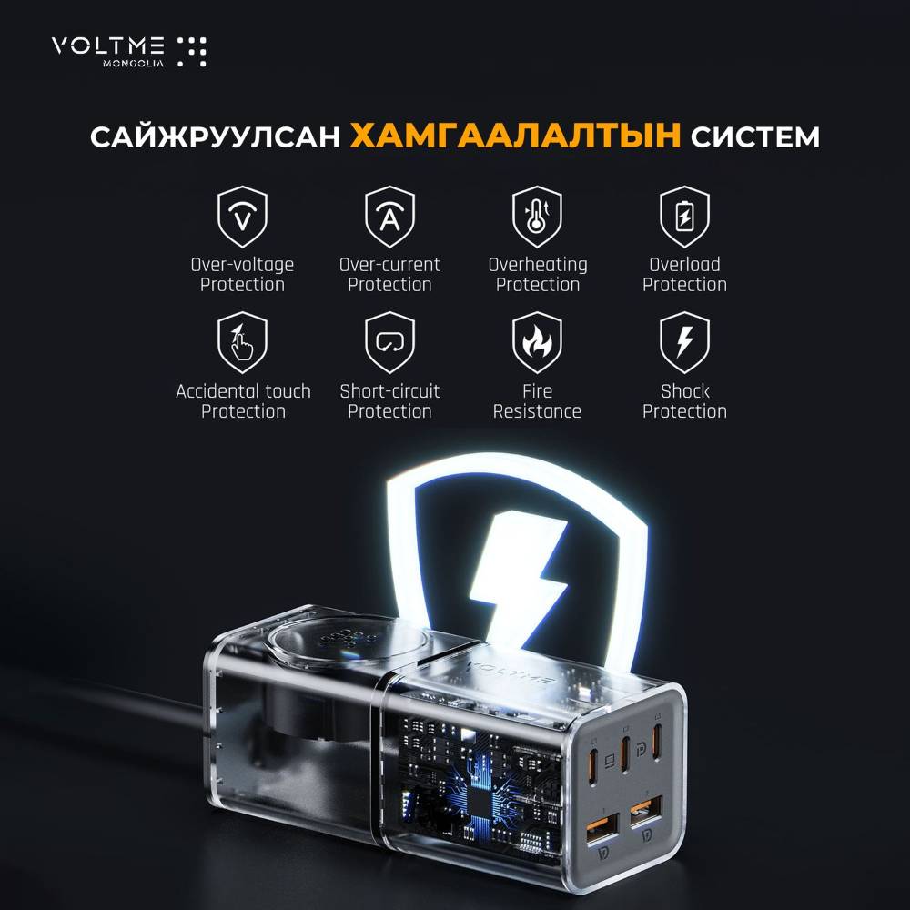 - Дэвшилтэт GaN технологи: Дэвшилтэт технологи нь цахилгаан зарцуулалтыг бууруулж, цэнэглэх үр ашгийг 93%-иас дээш болгодог. Мөн хэт халалт, хэт гүйдэл, хэт хүчдэл, богино холболтоос хамгаалах хамгаалалтын системтэй.