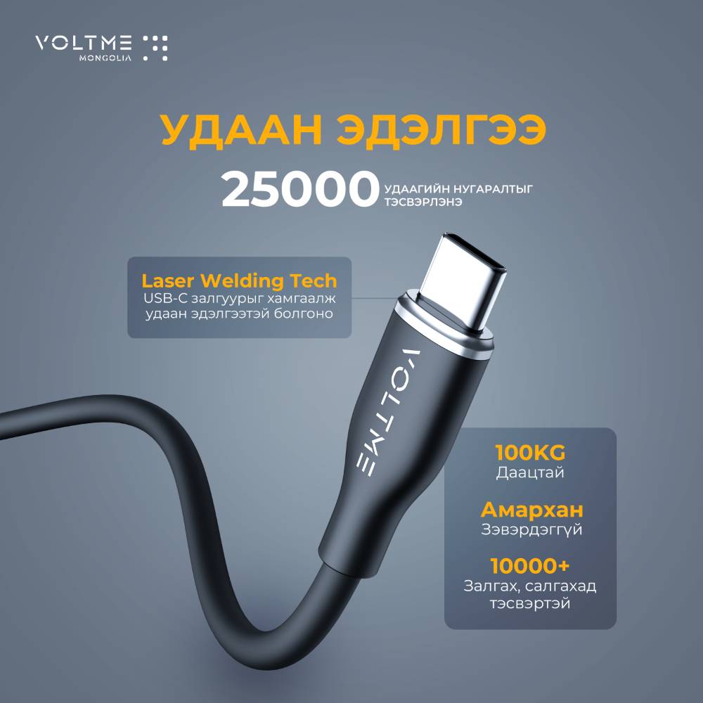 - 100W PD түргэн цэнэглэлт: MacBook Pro 16" гэх мэт төхөөрөмжийг 1 цагт 75% хүртэл цэнэглэнэ (60W кабельтэй харьцуулахад 50% хурдан)