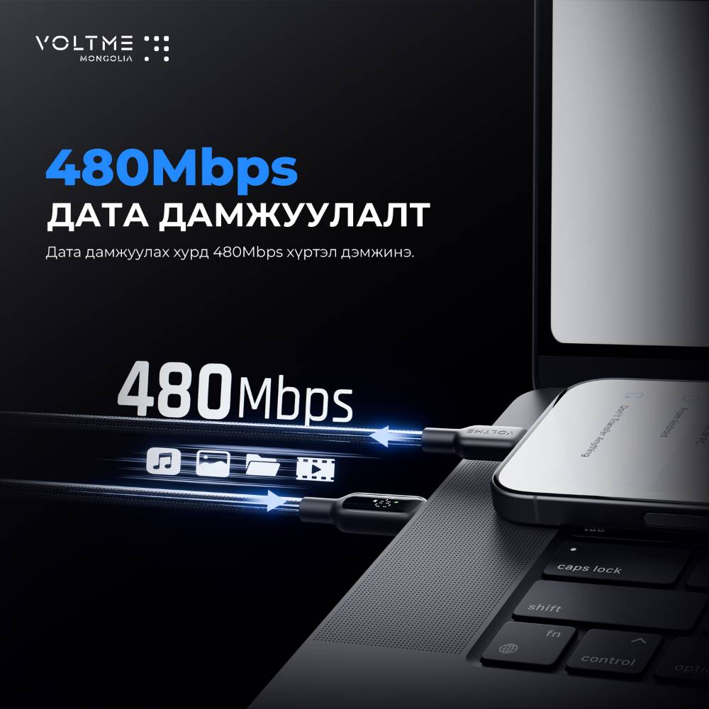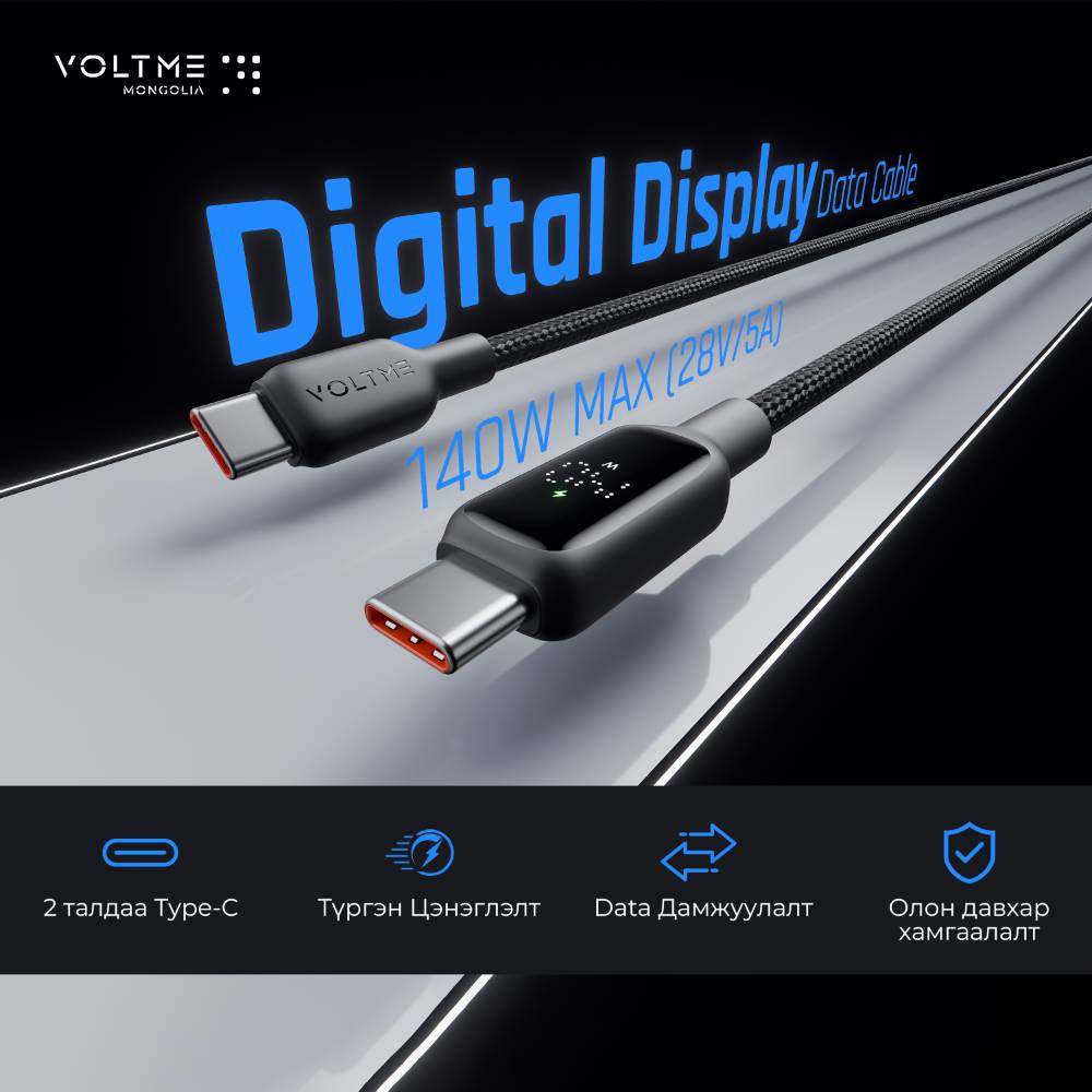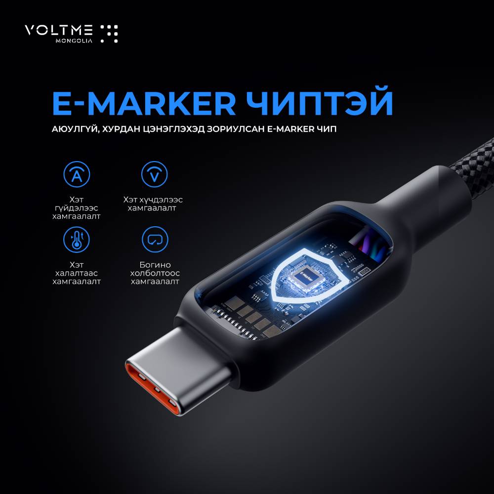 VOLTME Powerlink Vizo нь дээд зэрэглэлийн кабель, 140W PD түргэн цэнэглэгч, LED заагчтай, E-Marker чип бүхий аюулгүй, найдвартай USB-C кабель юм.