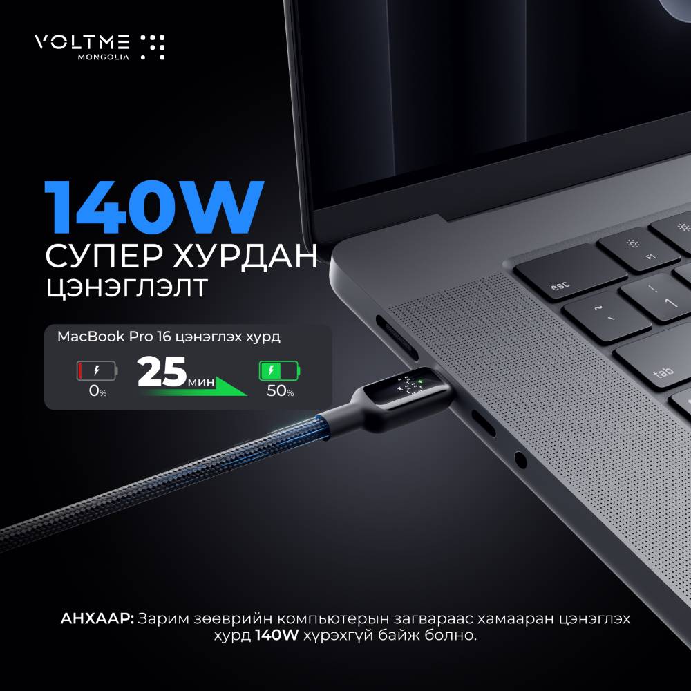 Гүйдэл / Чадал: 140W (PD 3.1 дэмждэг)